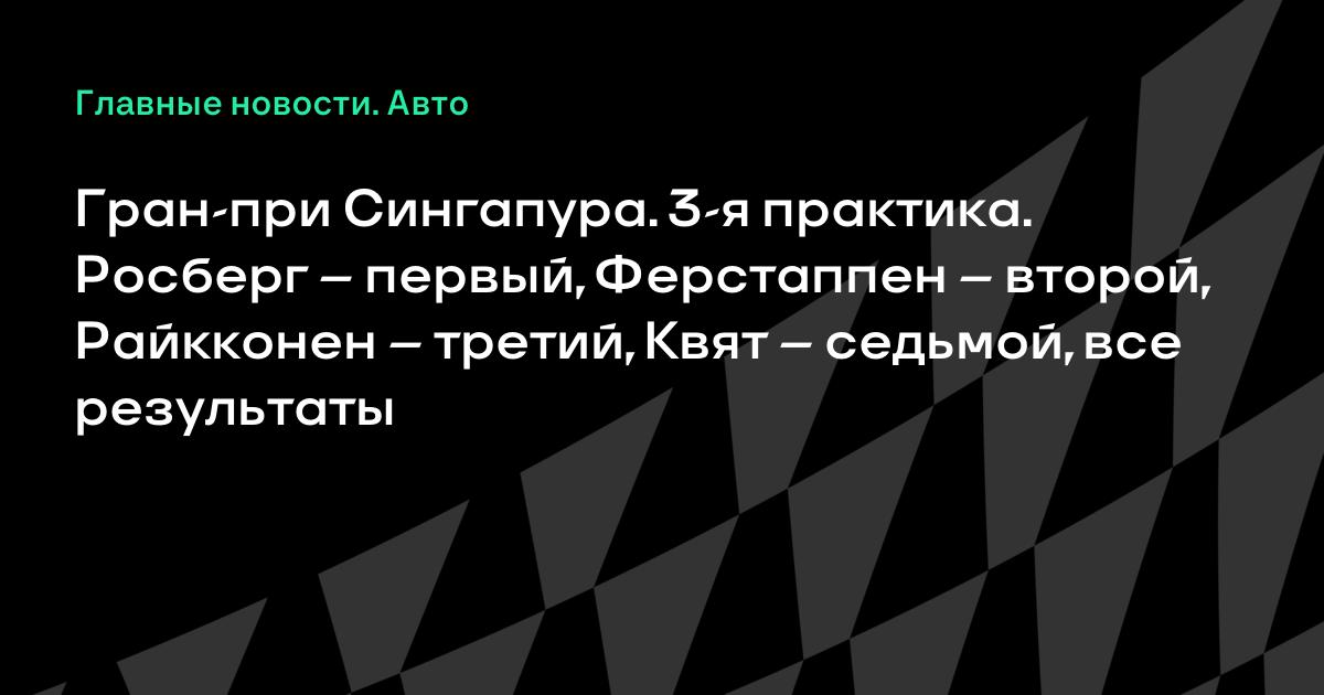Гран-при Сингапура. 3-я практика. Росберг – первый, Ферстаппен – второй, Райкконен – третий, Квят – седьмой, все результаты
