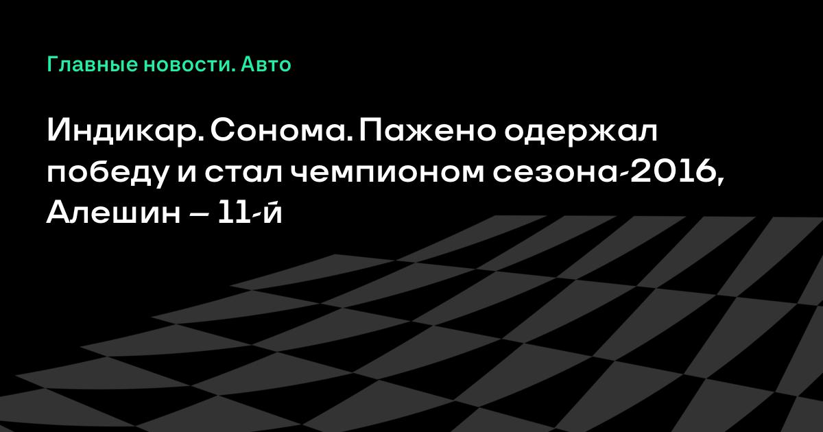 Индикар. Сонома. Пажено одержал победу и стал чемпионом сезона-2016, Алешин – 11-й