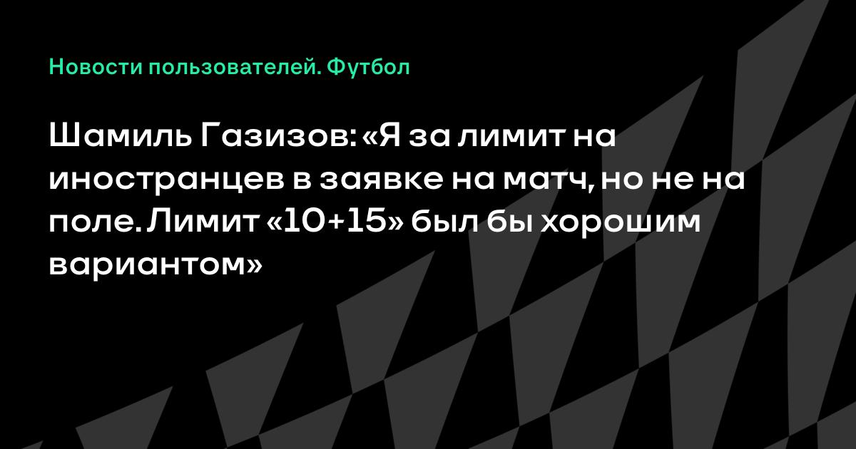 Шамиль Газизов: «Я за лимит на иностранцев в заявке на матч, но не на поле. Лимит «10+15» был бы хорошим вариантом»