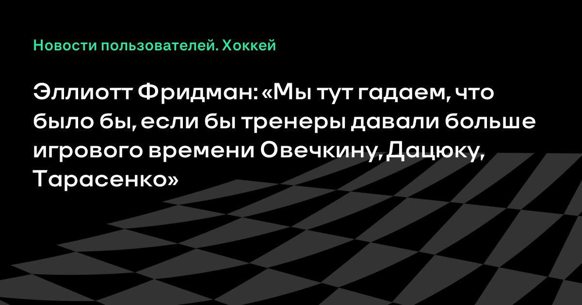 Эллиотт Фридман: «Мы тут гадаем, что было бы, если бы тренеры давали больше игрового времени Овечкину, Дацюку, Тарасенко»