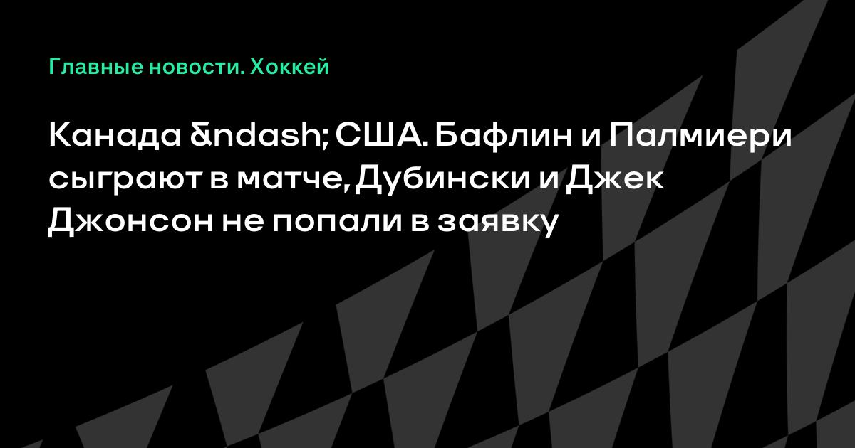 Канада – США. Бафлин и Палмиери сыграют в матче, Дубински и Джек Джонсон не попали в заявку