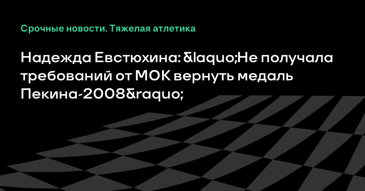 Российская тяжелоатлетка Надежда Евстюхина сообщила, что Международный олимпийский комитет (МОК) не обращался к ней с требованием вернуть медаль Пекина-2008.
