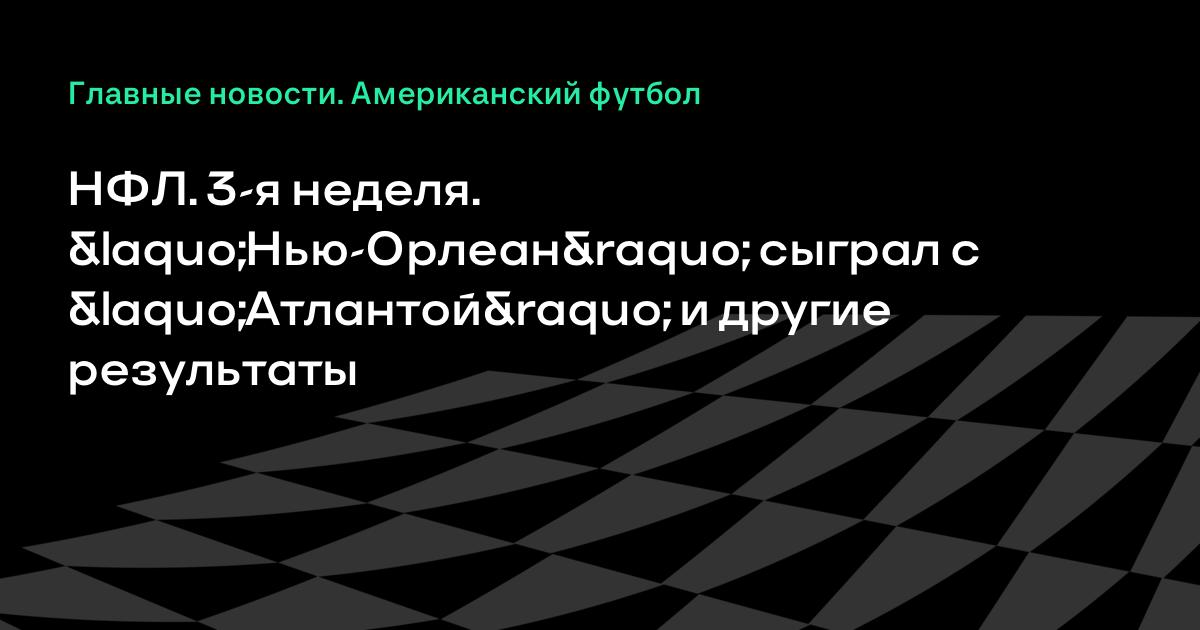 НФЛ. 3-я неделя. «Нью-Орлеан» сыграл с «Атлантой» и другие результаты