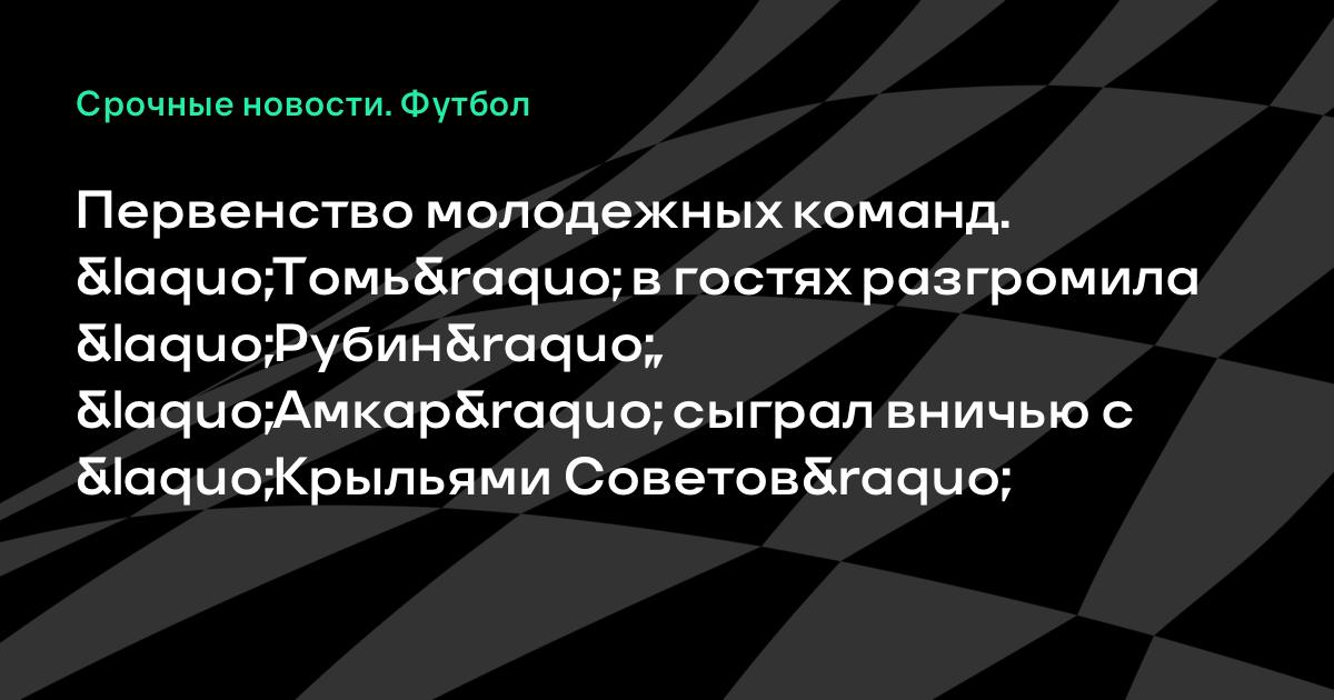 Первенство молодежных команд. «Томь» в гостях разгромила «Рубин», «Амкар» сыграл вничью с «Крыльями Советов»