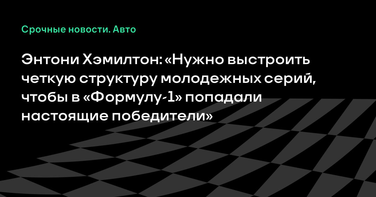 Энтони Хэмилтон: «Нужно выстроить четкую структуру молодежных серий, чтобы в «Формулу-1» попадали настоящие победители»
