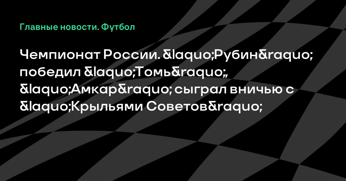 Чемпионат России. «Рубин» победил «Томь», «Амкар» сыграл вничью с «Крыльями Советов»