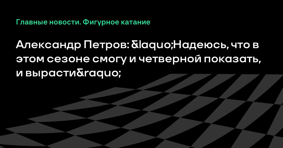 – Ответственность колоссальная. Но я скажу за себя. Мое мнение, что нужно выходить на старт и делать свое, то, что ты умеешь. Надеюсь, что в этом сезону смогу и четверной показать, и вырасти в том плане, чтобы не слыть «постюниором», когда спортсмен выходит на взрослый уровень, а продолжает делать то, что в юниорах. Я должен полноценно окрепнуть даже не физически, не морально, а чтобы доказать себе, что достоин выступать на высоком уровне», – сказал Петров.