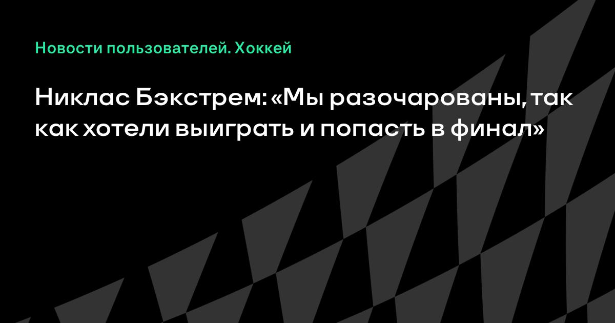«К сожалению, один бросок перечеркнул все наши надежды. Мы разочарованы, так как хотели выиграть и попасть в финал. На льду были две команды, которые играли хорошо в обороне, старались избегать ошибок», – сказал Бэкстрем.
