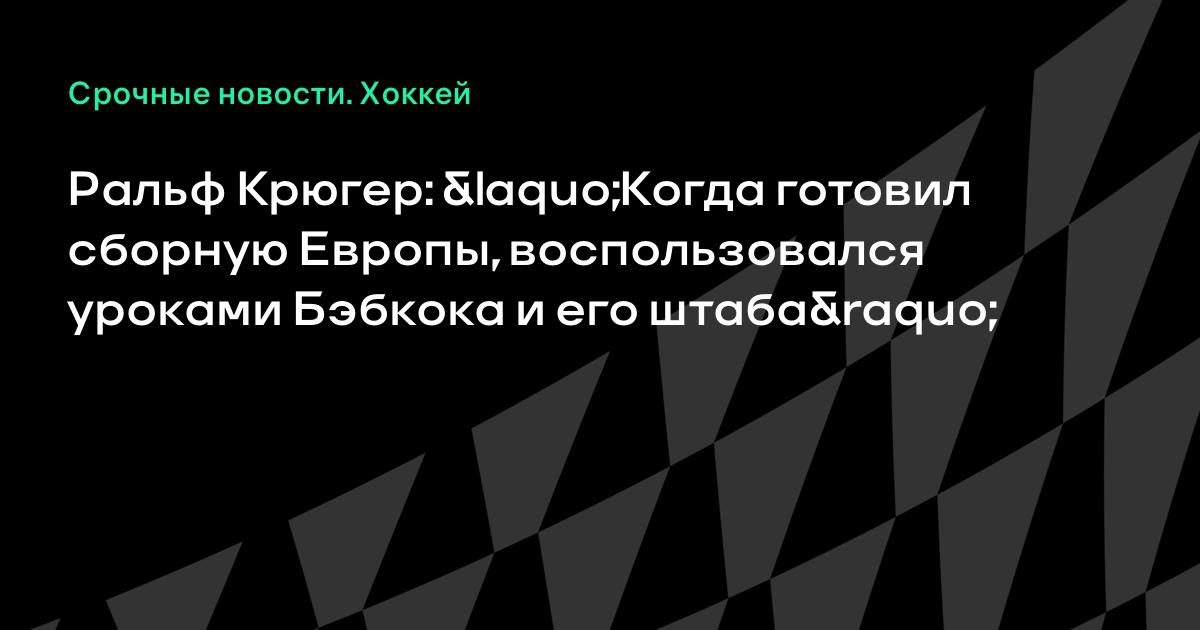 Ральф Крюгер: «Когда готовил сборную Европы, воспользовался уроками Бэбкока и его штаба»