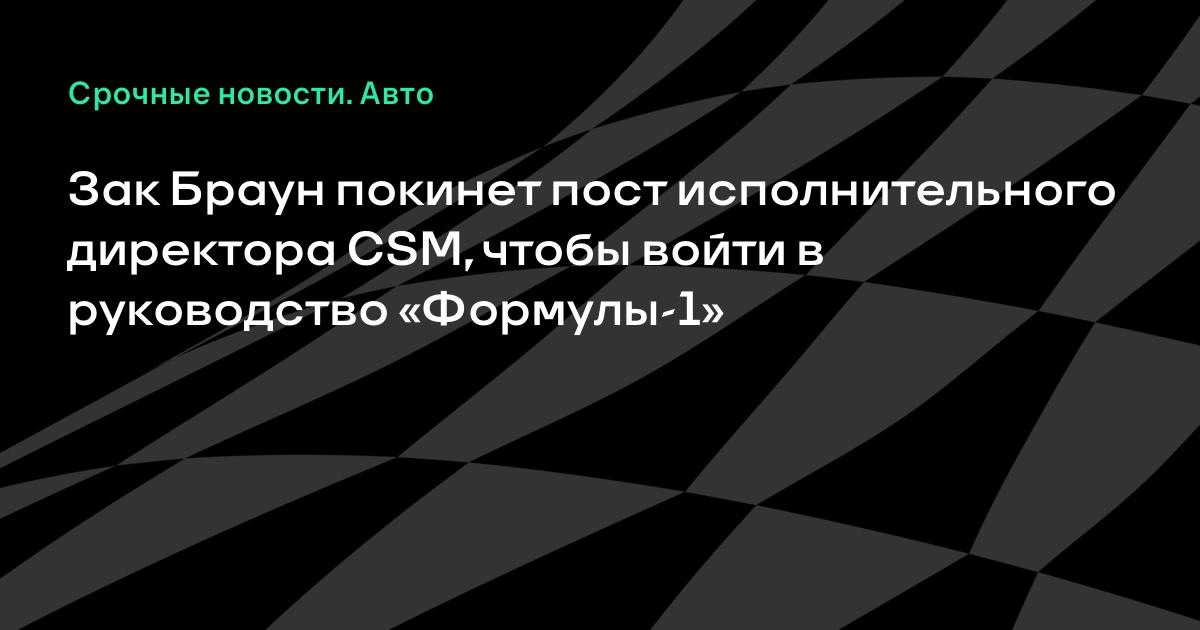 Исполнительный директор компании CSM Sport & Entertainment Зак Браун покинет занимаемую должность в конце года, сообщает motorsport. Решение об уходе из компании позволит Брауну занять одну из управляющих должностей в «Формуле-1».