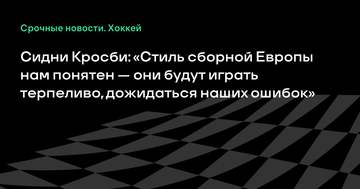 Стиль сборной Европы нам понятен — они будут играть терпеливо, дожидаться наших ошибок. Мы же постараемся решить игру за счет скорости», — сказал Кросби.