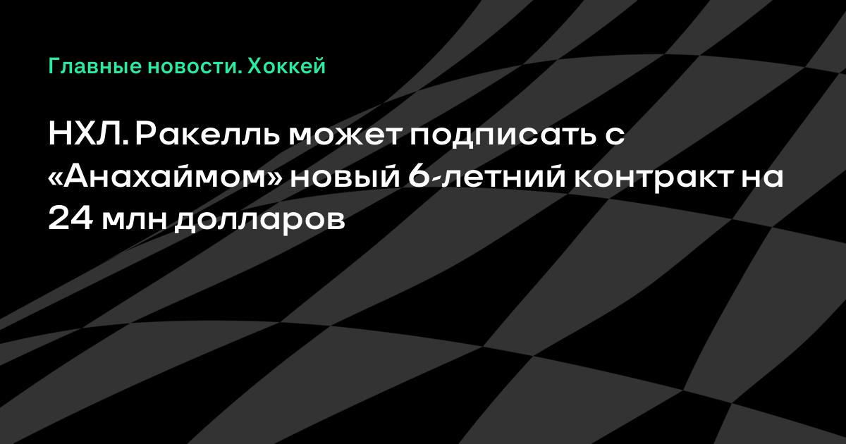 НХЛ. Ракелль может подписать с «Анахаймом» новый 6-летний контракт на 24 млн долларов
