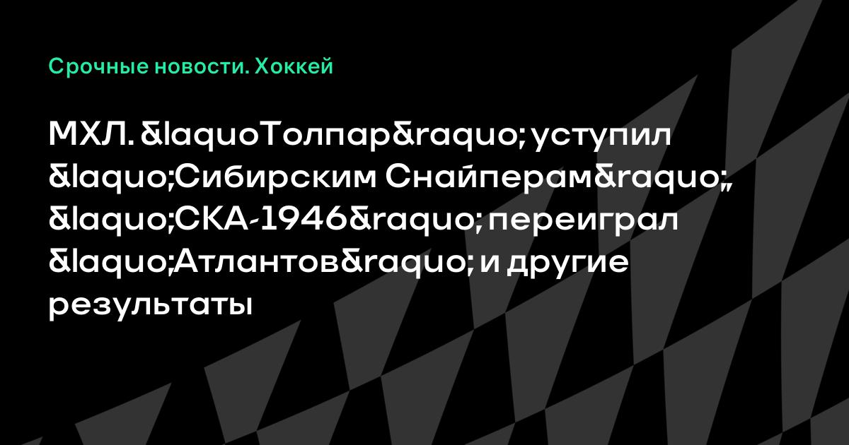 МХЛ. «Толпар» уступил «Сибирским Снайперам», «СКА-1946» переиграл «Атлантов» и другие результаты