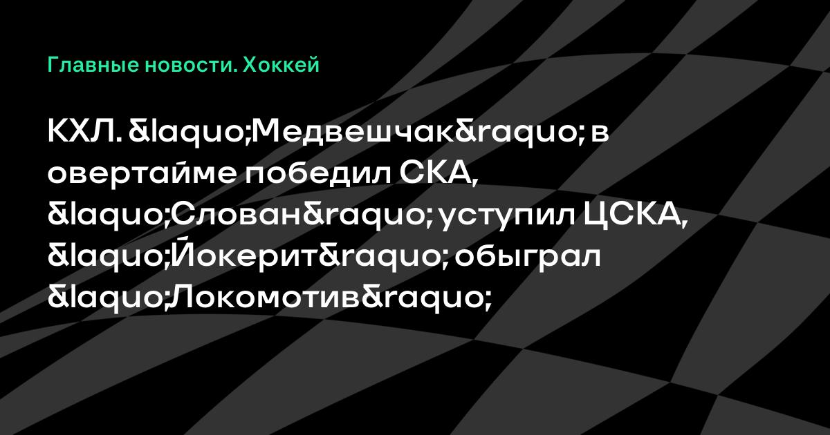 КХЛ. «Медвешчак» в овертайме победил СКА, «Слован» уступил ЦСКА, «Йокерит» обыграл «Локомотив»