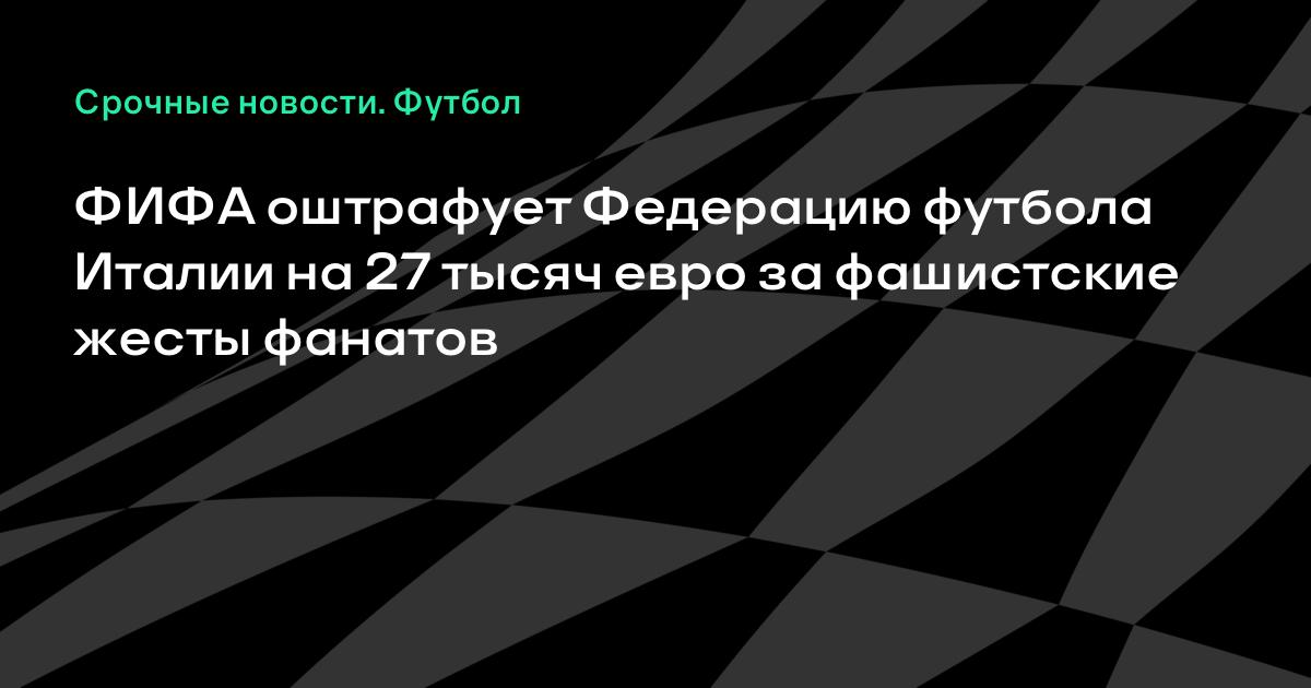 ФИФА оштрафует Федерацию футбола Италии на 27 тысяч евро за фашистские жесты фанатов