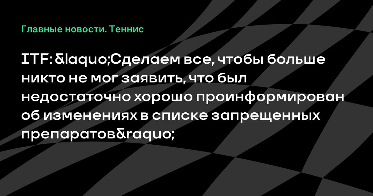 ITF: «Сделаем все, чтобы больше никто не мог заявить, что был недостаточно хорошо проинформирован об изменениях в списке запрещенных препаратов»