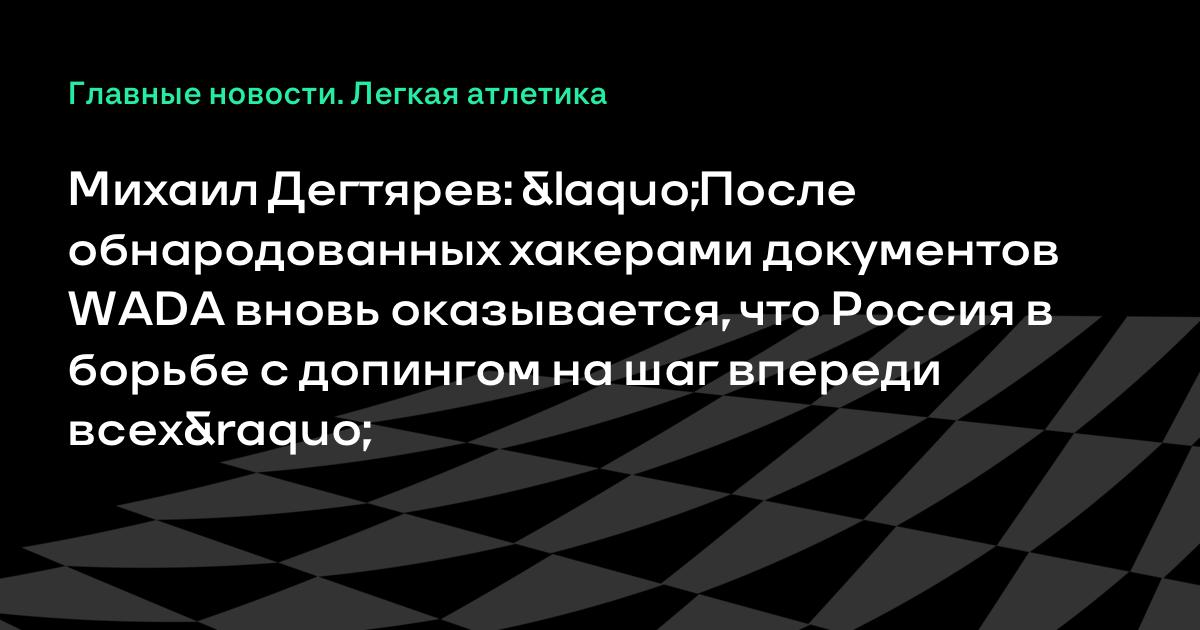 Михаил Дегтярев: «После обнародованных хакерами документов WADA вновь оказывается, что Россия в борьбе с допингом на шаг впереди всех»