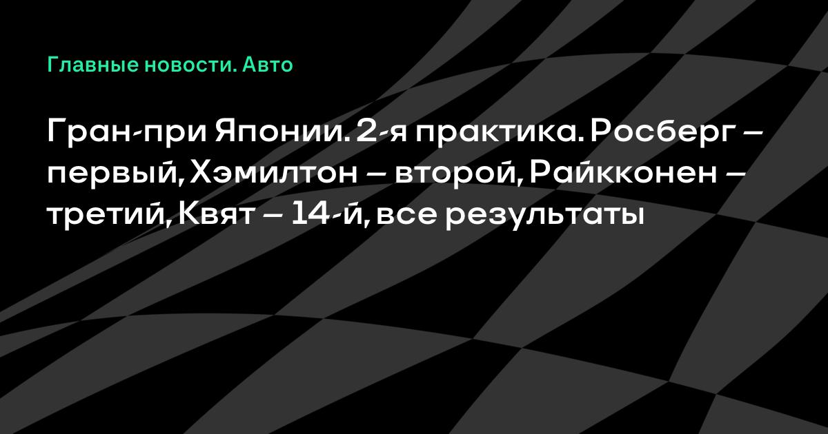 Гран-при Японии. 2-я практика. Росберг – первый, Хэмилтон – второй, Райкконен – третий, Квят – 14-й, все результаты