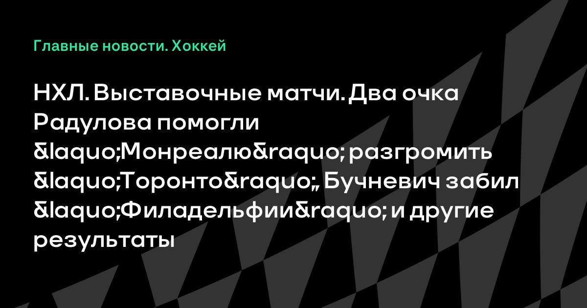 НХЛ. Выставочные матчи. Два очка Радулова помогли «Монреалю» разгромить «Торонто», Бучневич забил «Филадельфии» и другие результаты