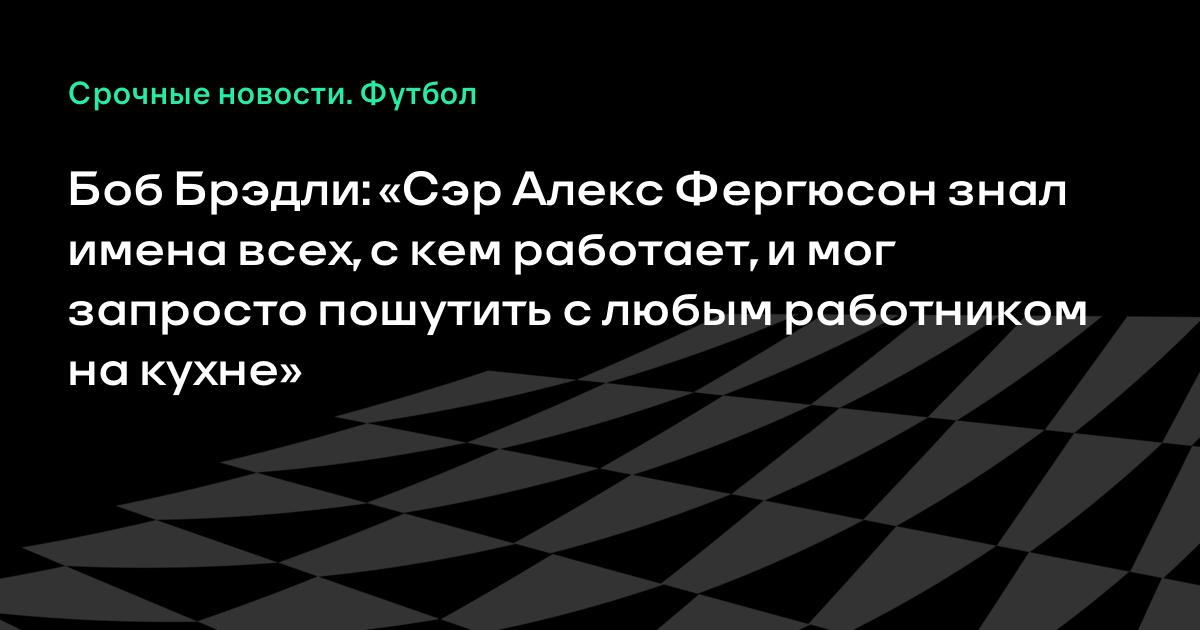 Боб Брэдли: «Сэр Алекс Фергюсон знал имена всех, с кем работает, и мог запросто пошутить с любым работником на кухне»