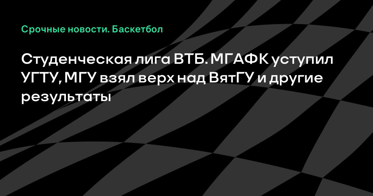 Студенческая лига ВТБ. МГАФК уступил УГТУ, МГУ взял верх над ВятГУ и другие результаты