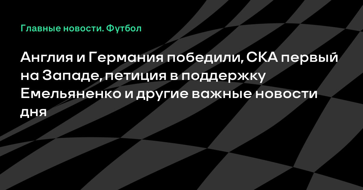 Англия и Германия победили, СКА первый на Западе, петиция в поддержку Емельяненко и другие важные новости дня