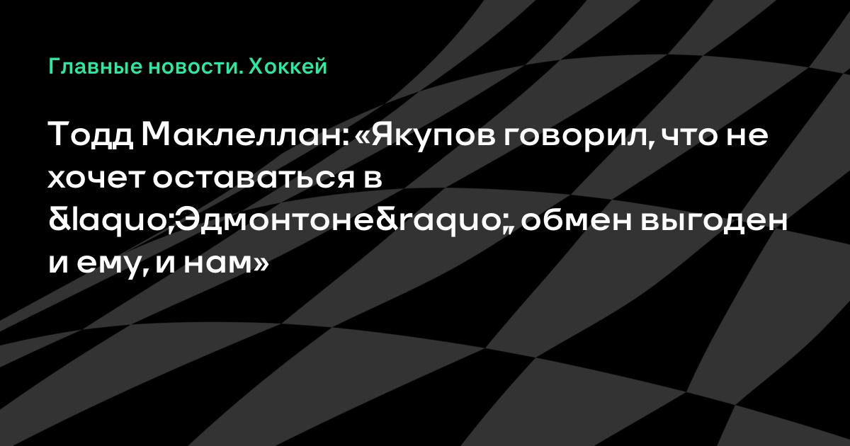 Тодд Маклеллан: «Якупов говорил, что не хочет оставаться в «Эдмонтоне», обмен выгоден и ему, и нам»