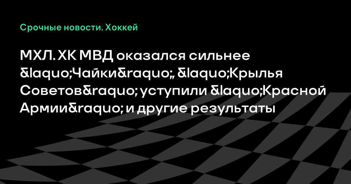 МХЛ. ХК МВД оказался сильнее «Чайки», «Крылья Советов» уступили «Красной Армии» и другие результаты