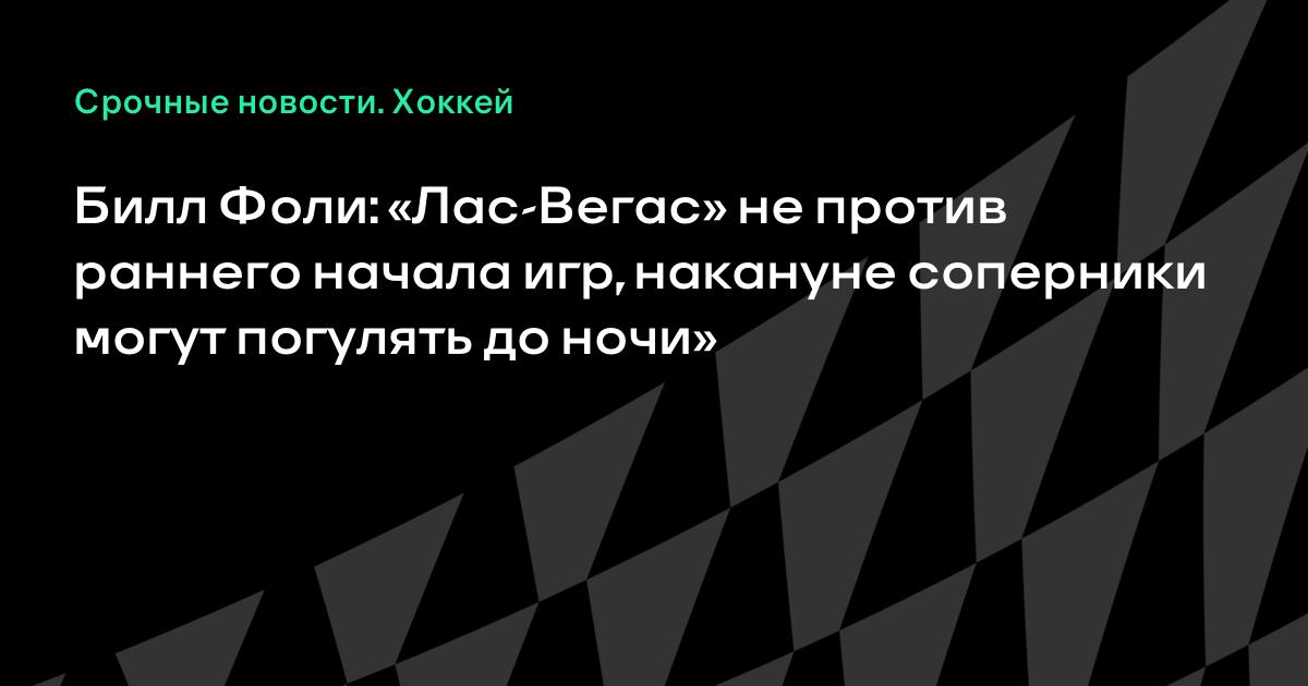 Билл Фоли: «Лас-Вегас» не против раннего начала игр, накануне соперники могут погулять до ночи»