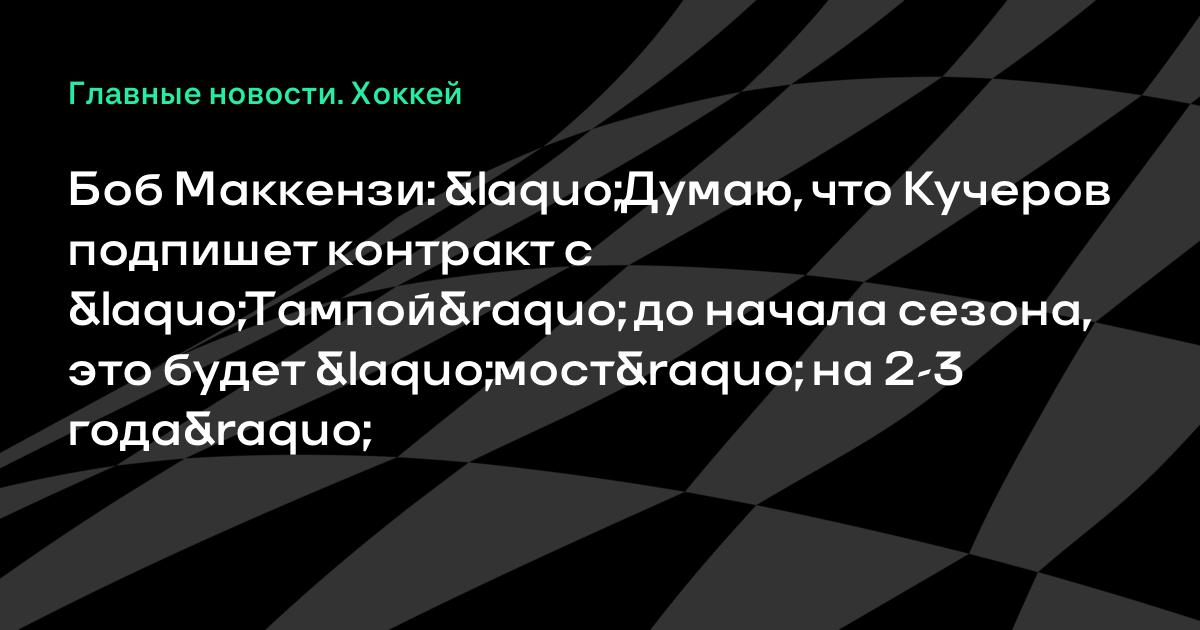 Проблемы «Тампы» с потолком не позволят Кучерову получить справедливые условия – от 6 миллионов в год на срок 5-7 лет. «Мост» не просто имеет смысл, это единственный вариант», – написал Маккензи в твиттере.