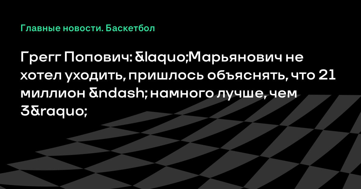 Грегг Попович: «Марьянович не хотел уходить, пришлось объяснять, что 21 миллион – намного лучше, чем 3»