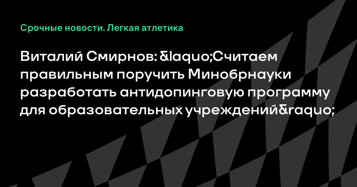 Глава Независимой общественной антидопинговой комиссии Виталий Смирнов сообщил о том, что попросил Минобрнауки разработать образовательную антидопинговую программу.