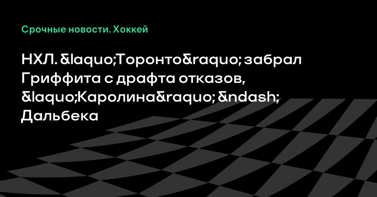 НХЛ. «Торонто» забрал Гриффита с драфта отказов, «Каролина» – Дальбека
