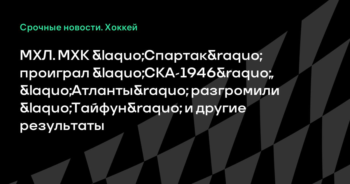 МХЛ. МХК «Спартак» проиграл «СКА-1946», «Атланты» разгромили «Тайфун» и другие результаты