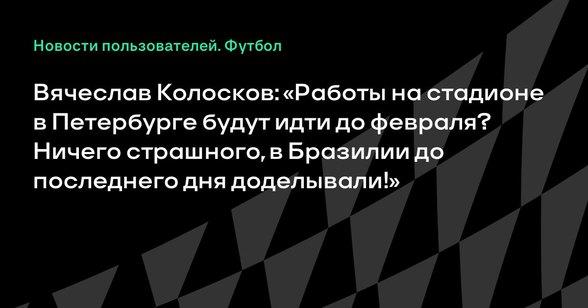 «В Бразилии стадионы доделывали до последнего дня и провели один из лучших турниров в истории! В Санкт-Петербурге же никаких проблем больше не будет, не волнуйтесь, достоят. Власть пообещала выполнить свои обязательства, объект на контроле лично у президента, уж теперь то не подведут, все успеют сделать.