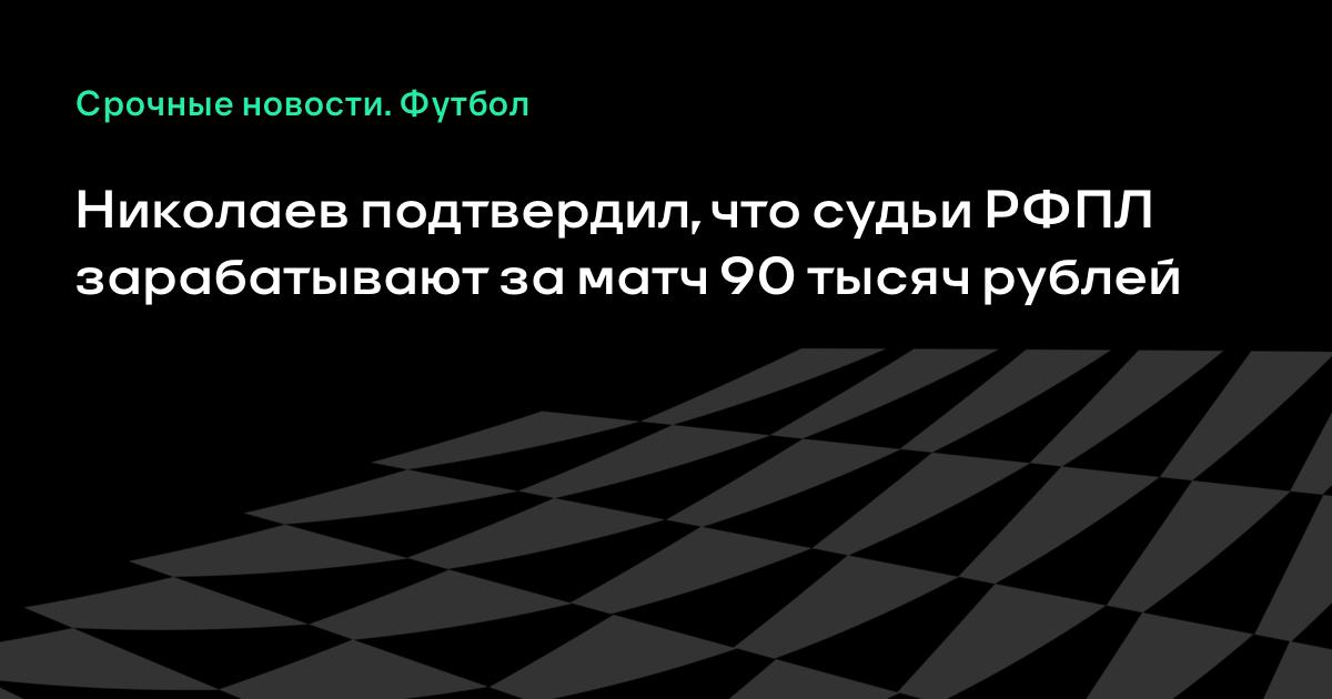 Николаев подтвердил, что судьи РФПЛ зарабатывают за матч 90 тысяч рублей