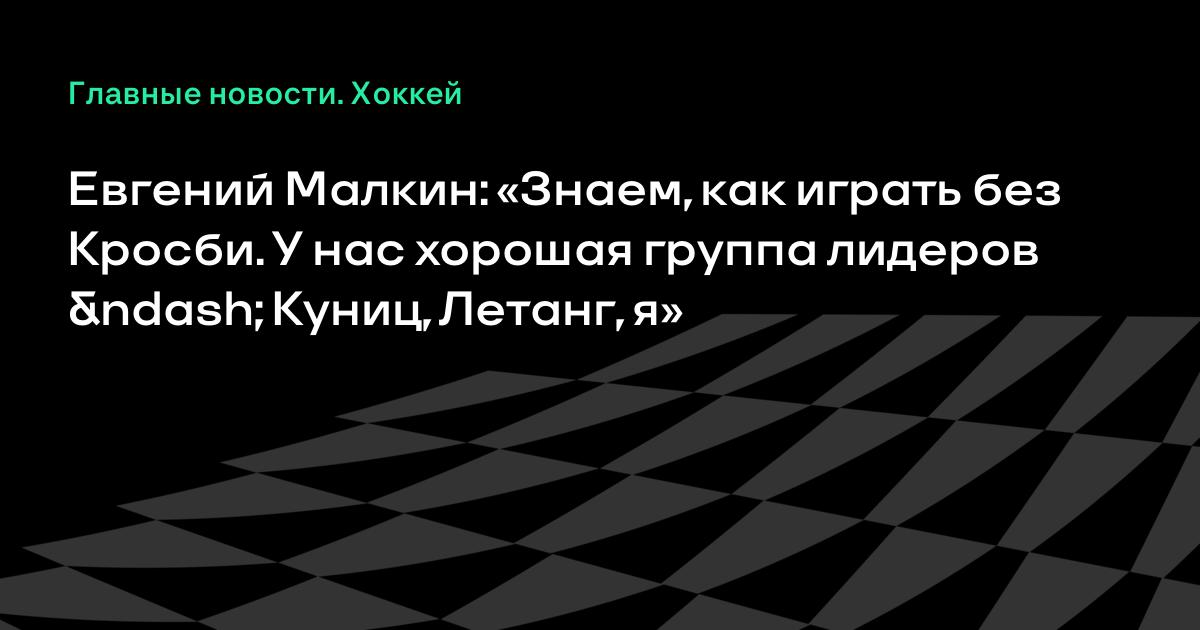 Евгений Малкин: «Знаем, как играть без Кросби. У нас хорошая группа лидеров – Куниц, Летанг, я»