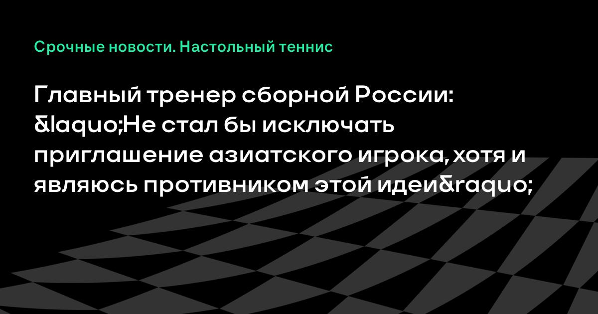 Главный тренер сборной России по настольному теннису Сергей Астахов сообщил, что не исключает вариант с приглашением в команду спортсмена из Азии.