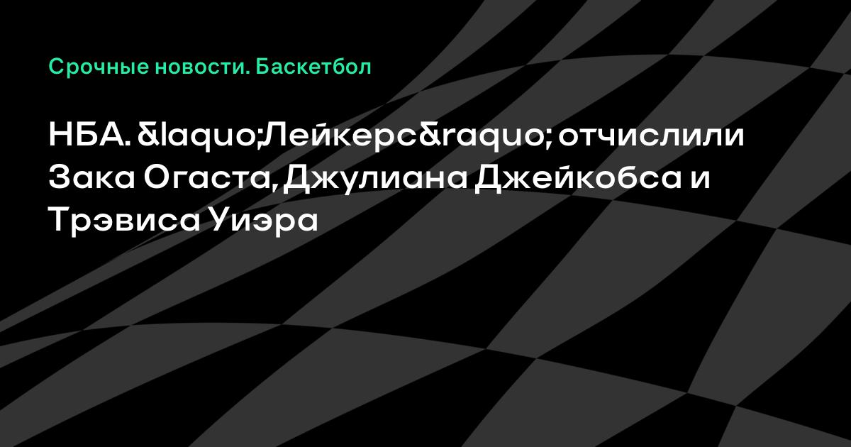 «Лейкерс» объявили о расторжении соглашений с форвардами Заком Огастом и Трэвисом Уиэром, а также защитником Джулианом Джейкобсом, сообщает официальный сайт клуба. Состав команды сократился до 17 игроков.