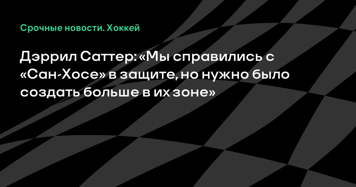 «Сан-Хосе» – габаритная и сильная команда в зоне атаки. Мы справлялись довольно успешно. Нам нужно было создать больше в зоне соперника», – сказал Саттер.