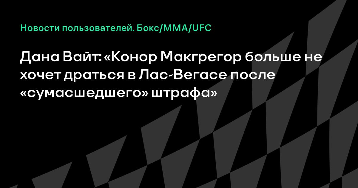 «Конор Макгрегор позвонил мне вчера и сказал: «Я не хочу больше драться в Неваде. Никогда»», — сказал Вайт. «В чем вообще смысл для Невады? Вы штрафуете этого парня и Нэйта на такую сумму денег, после такого люди вообще не захотят драться в вашем штате. Это не хорошо».