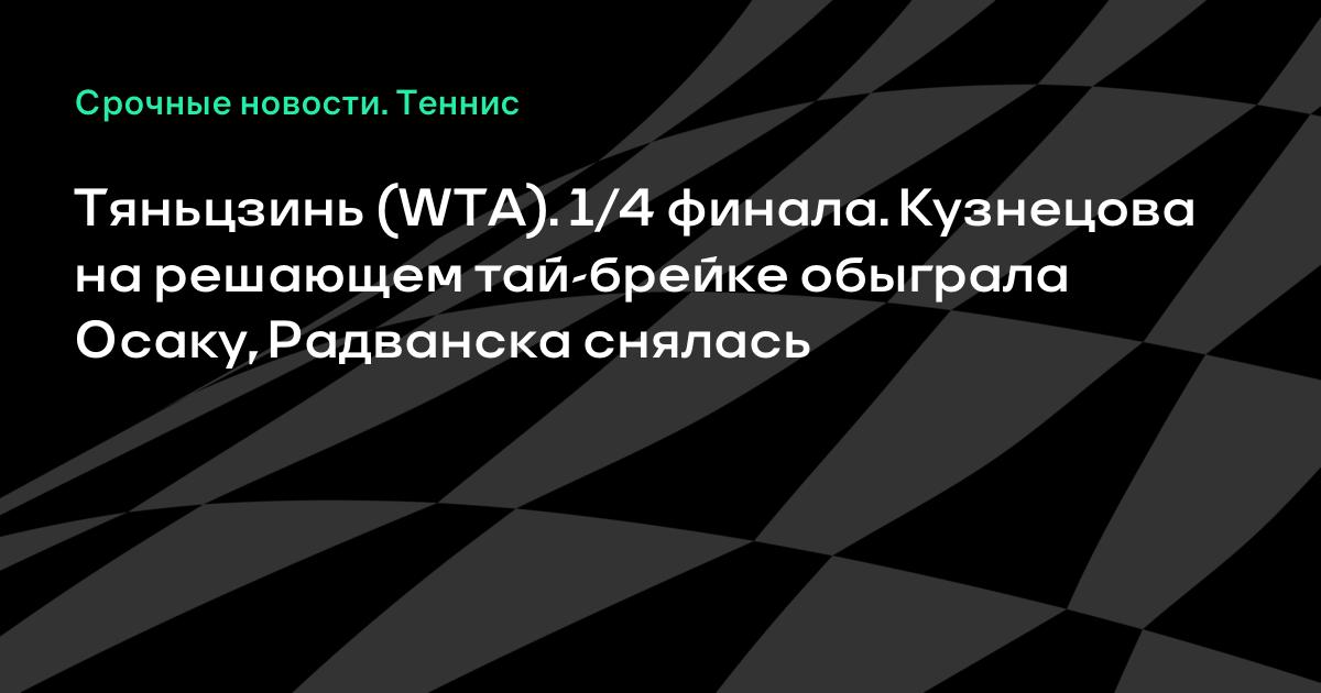 Тяньцзинь (WTA). 1/4 финала. Кузнецова на решающем тай-брейке обыграла Осаку, Радванска снялась