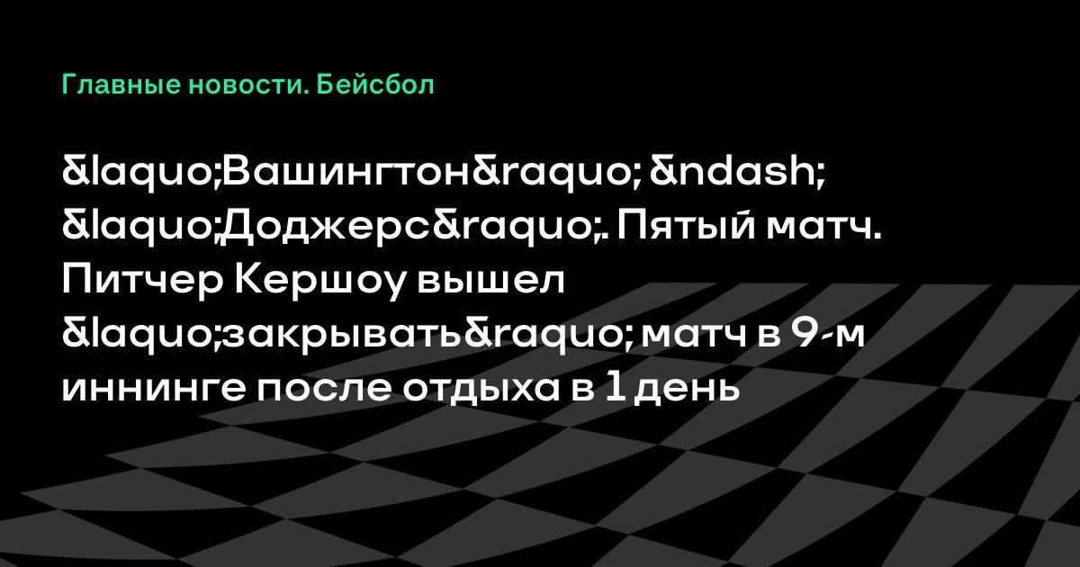 «Вашингтон» – «Доджерс». Пятый матч. Питчер Кершоу вышел «закрывать» матч в 9-м иннинге после отдыха в 1 день