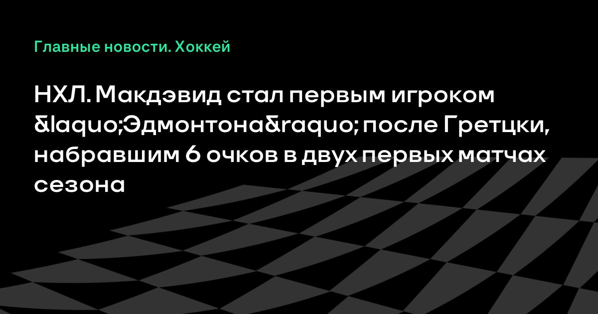 НХЛ. Макдэвид стал первым игроком «Эдмонтона» после Гретцки, набравшим 6 очков в двух первых матчах сезона