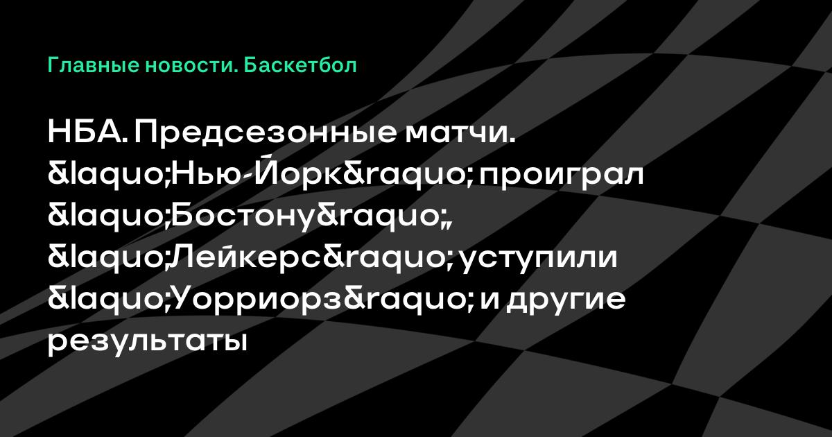 НБА. Предсезонные матчи. «Нью-Йорк» проиграл «Бостону», «Лейкерс» уступили «Уорриорз» и другие результаты