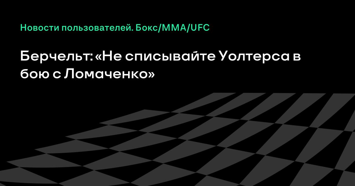 Берчельт: «Не списывайте Уолтерса в бою с Ломаченко»