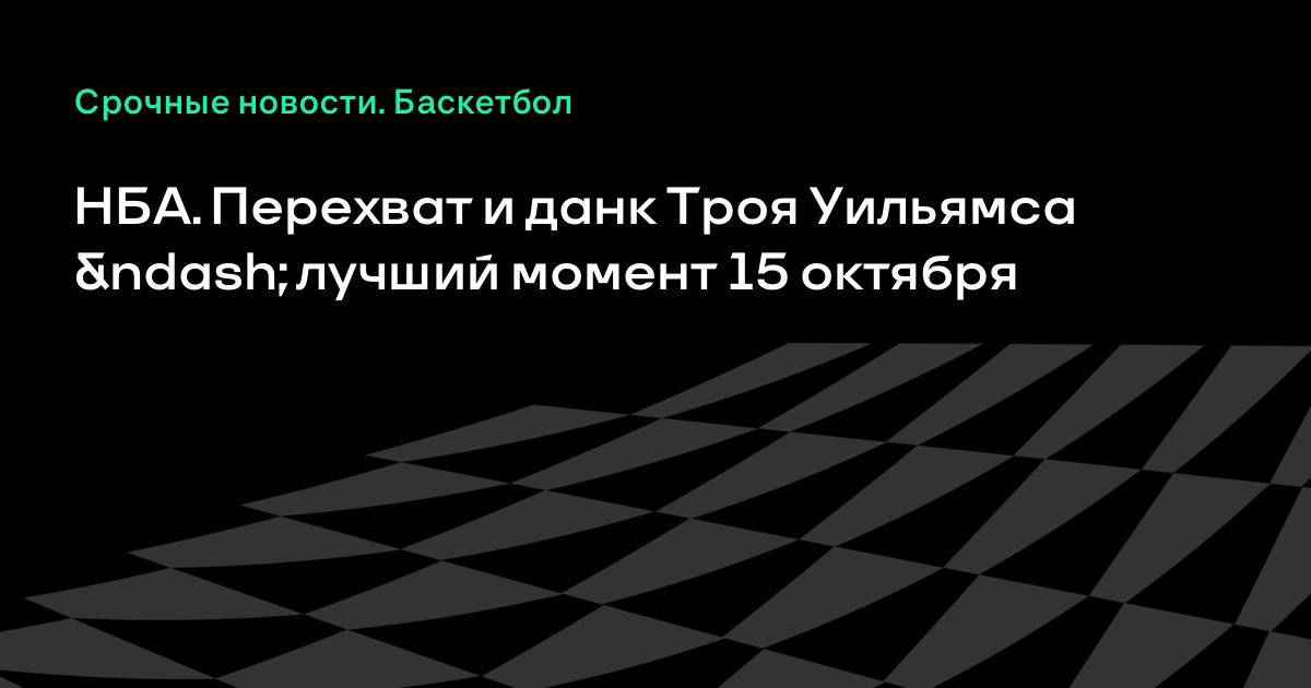 16 октября 2016, 11:12 НБА. Перехват и данк Троя Уильямса – лучший момент 15 октября Перехват и данк Троя Уильямса – лучший момент предсезонных матче 15 октября. ВИДЕО Источник: YouTube Баскетбол НБА Баскетбол - видео