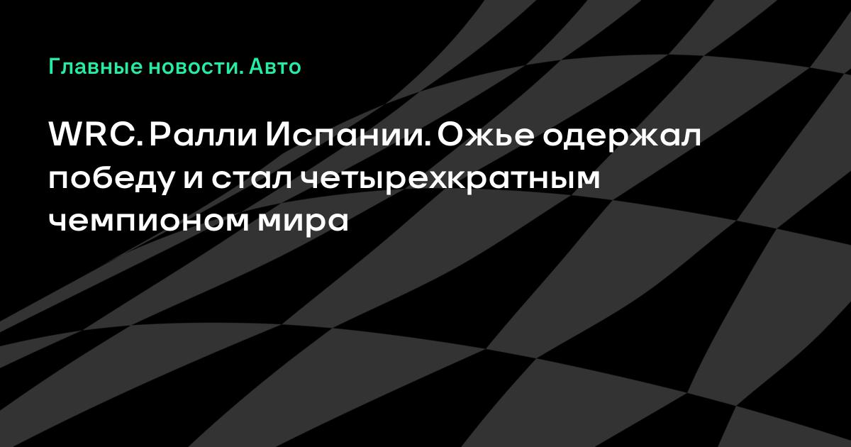 Пилот «Фольксвагена» Себастьян Ожье одержал победу на этапе в Испании чемпионата мира по ралли. Эта победа стала для гонщика пятой по ходу сезона, и позволила ему гарантировать себе четвертый чемпионский титул в сезоне-2016.