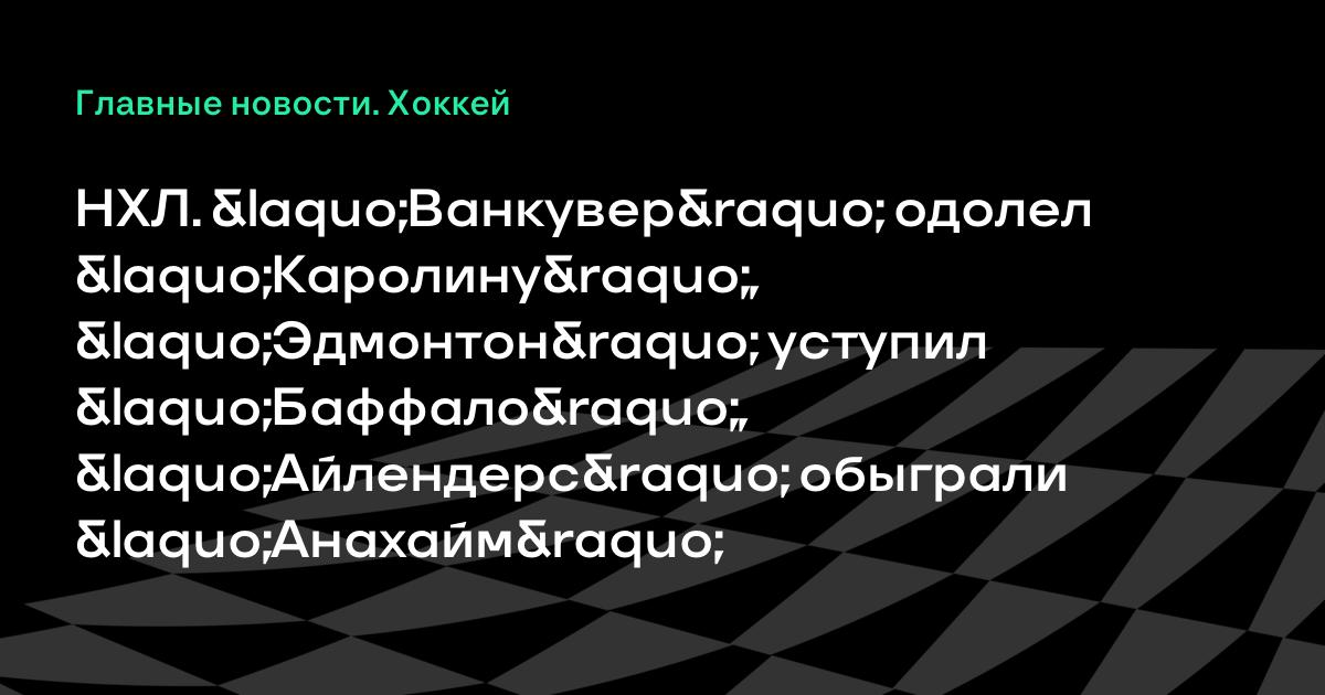 НХЛ. «Ванкувер» одолел «Каролину», «Эдмонтон» уступил «Баффало», «Айлендерс» обыграли «Анахайм»