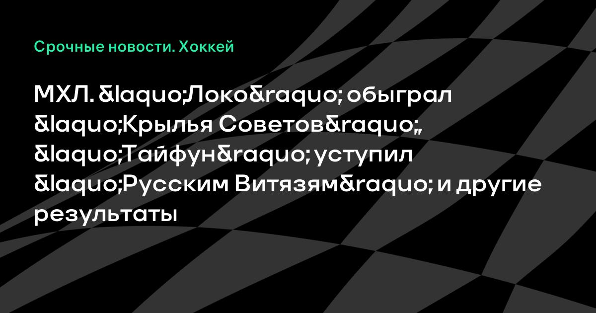 МХЛ. «Локо» обыграл «Крылья Советов», «Тайфун» уступил «Русским Витязям» и другие результаты